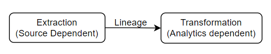 Do not consider extraction and transformation as one process. There should be a separate job executing in a separate pipeline. Although it should maintain lineage.​